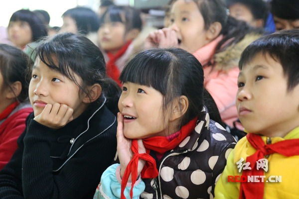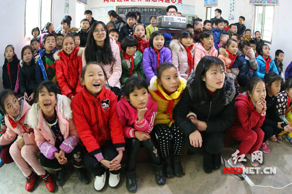 11月20日,南华大学医学院支教志愿者与湖南省衡阳县樟树乡中心小学的同学们一起看电影。