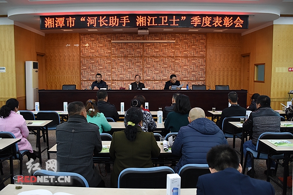 红网时刻11月24日讯(湘潭分站记者 凌雨晴)11月24日下午,湘潭市召开“河长助手·湘江卫士”季度表彰会,湘潭中环污水有限公司、火炬学校被评为优秀团体,潘建、戴海斌、邓卫平等8人被评为优秀河长助手。