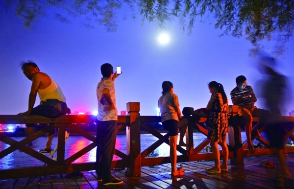7月30日傍晚,长沙市湘江风光带裕湘纱厂附近,市民在江边休闲纳凉。 记者 李健 摄