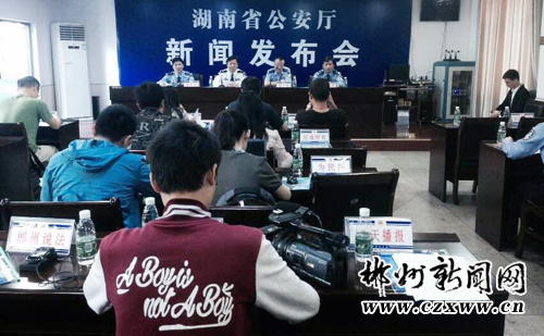 红网郴州站5月7日讯 (记者 周小丽 通讯员 罗远强) 5月7日上午,省公安厅在郴州市苏仙分局举行公安部督办的“2014—843”毒品目标案新闻发布会,该案是郴州市警方经过长达8个多月时间专案侦查破获的案件,缴获毒品冰毒100余公斤,成功摧毁了一个横跨广东、贵州、湖南三省的毒品犯罪分销网络。据悉,该案是郴州历年来单起缴获毒品最多的案件。