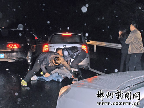 “抓!”邓德华一句斩钉截铁的话语响彻了整个寂静的夜晚。得到抓捕命令后,李南和袁辅谦一左一右对“彪哥”进行夹击,受惊的“彪哥”犹如脱缰的野兽猛踩油门就往前冲,接连撞坏前面三辆车,最终被民警擒获。