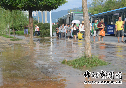 红网郴州站8月20日讯(记者 韩先敏 实习生 谭素芬)8月19日下午,市民唐先生拨打本网新闻热线(0735-2892485)反映,高斯贝尔公交车站台附近地下自来水管破裂导致路面积水,影响市民通行。