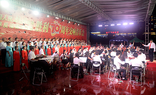 9月2日晚上,郴州市纪念中国人民抗日战争暨世界反法西斯战争胜利70周年交响音乐会在五岭广场举行,图为音乐会现场。(记者 陈建平 摄)