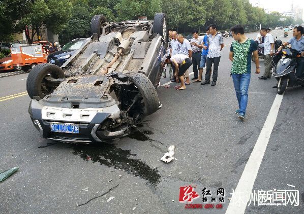 株洲晚报9月8日讯7日下午3点左右,在天元区黄山路上,一辆长城哈弗轿车撞上一辆停在路边的标致轿车后翻车。事故中共有三辆车不同程度损坏,所幸没有人员伤亡。