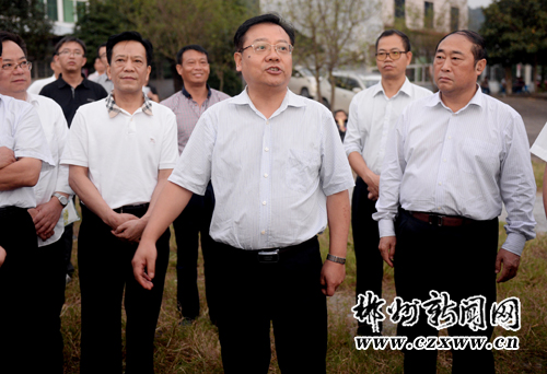 10月22日,市委书记易鹏飞在苏仙区许家洞调研产业项目。(记者陈建平摄)