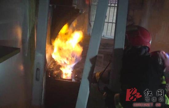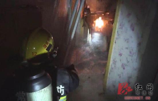 安乡消防到达现场时发现,起火建筑为一楼居民房厨房,从窗外可以看到火焰已经呈猛烈燃烧态势。消防官兵立即疏散围观和楼上的群众,并组织灭火攻坚组进入房间。房间内烟雾弥漫能见度很低,通过几分钟的摸索,消防官兵找到了起火点并开始处置。