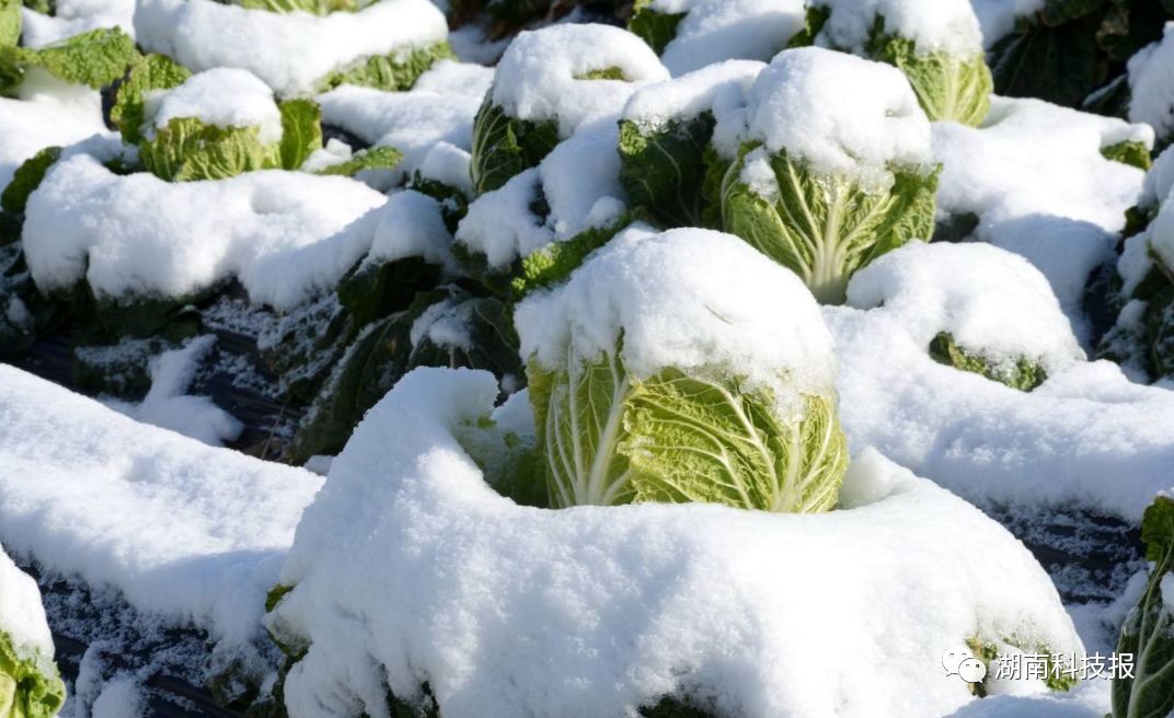 雪后立即清理沟渠,排除积水,提高根系活力,预防渍害发生。越冬期间蔬菜定植后适当增施磷肥和暖性有机肥,勤松土,提高地温。受寒害的蔬菜株势较弱,需要及时施肥补充营养,以腐熟的农家肥为宜,或添加稀薄的化肥,但要注意施化肥的浓度不要过高,应随蔬菜生长恢复情况,逐步加大浓度或施用量。连续阴天引起植株黄化时,还可喷施0.5%~1.0%蔗糖+0.1%~0.3%磷酸二氢钾混和液补充营养。