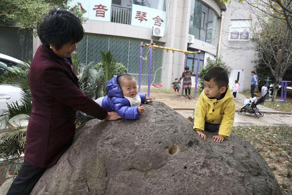 “到底年纪大了,带两个娃不轻松,我就和他们奶奶轮流着来,每人半年。”10月20日,67岁的外婆陈小毛说,她是一名退休工人,在老家喜欢和亲朋好友打打牌、跳跳舞消遣日子,在这里因为人地生疏,一般只在家带娃。