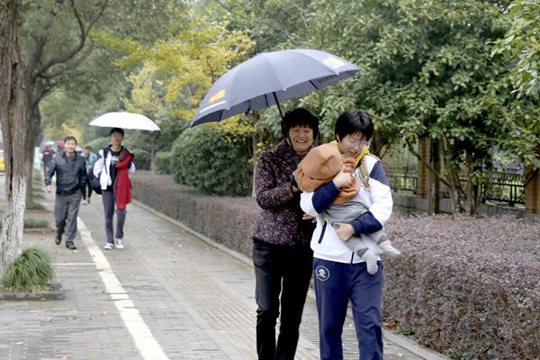 有时,老人也负责接送大宝。