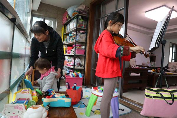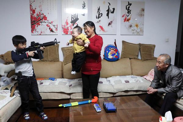 “两个孩子年龄相近,不上幼儿园时家里就成了游乐场,怎么也收拾不干净。”10月13日,62岁的奶奶童玉文在家里搞卫生。她说,儿子工作太忙,儿媳一人照顾两个孩子看不过来,她来一起住,多个帮手。