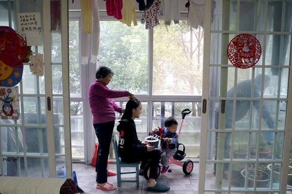 “儿子儿媳工作忙,大孙女学习忙,小孙女还常常要抱在手上,我们不来帮忙,谁来帮?”10月21日,66岁的奶奶毛武琴在阳台上给大孙女扎头发,74岁的爷爷徐水清则在一旁浇花。