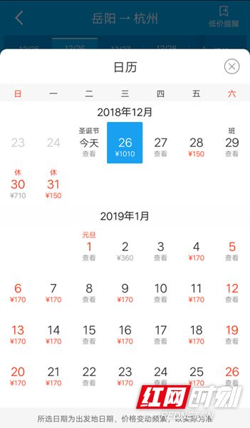 携程网、去哪儿网等APP上岳阳三荷机场票价查询。