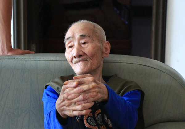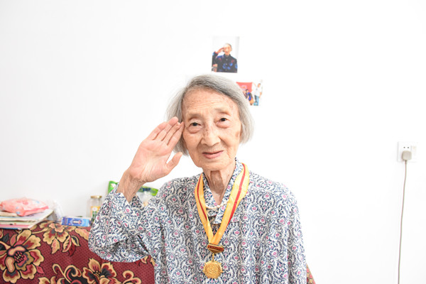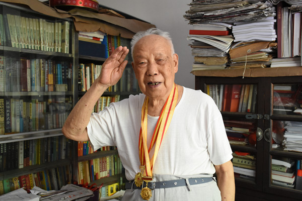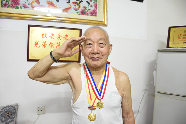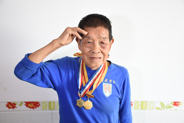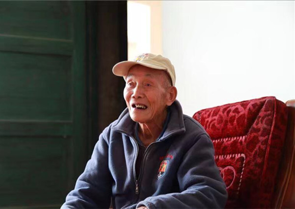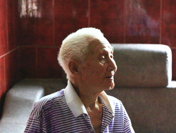 98岁的章春华老人曾是一名辎重兵,每日装卸炮弹,挑子弹手榴弹箱,食物药品军械。