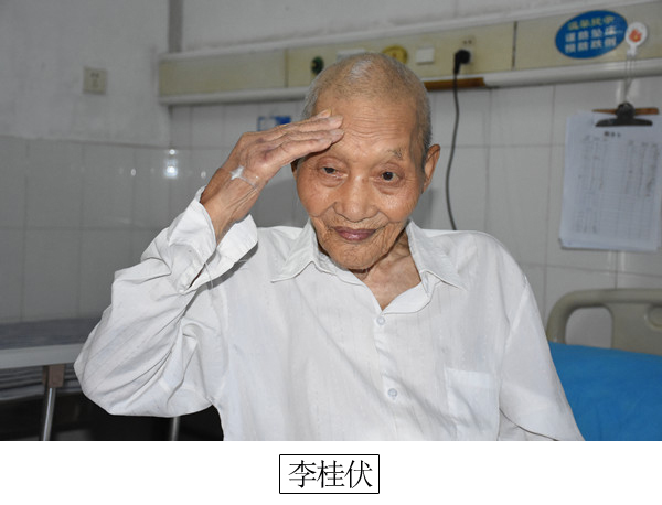 李桂伏:享年103岁(1914—2017),曾是抗战前线的一名司号长。24岁那年被“抽中”参军。作为补充新兵,成为一名号兵,通过每个号音传递冲锋、前进,撤退等信息。司号员除了吹号通信之外,在战斗时同样的跟着部队上战场。经过艰苦训练和挑选后成了司号长。