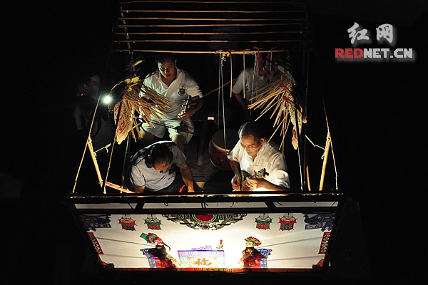 “一口叙说千古戏,双手对舞百万兵。”纸影戏就是艺人们的光影舞蹈。这看似单调而极简的道具,却能演绎上至帝王将相,下至寻常百姓的悲欢离合、人情冷暖,充分展示了民间艺人们丰富的生活阅历和艺术表现能力。在湘潭升平轩纸影博物馆的展演大厅里,木质的戏台上堆满了各式各样的纸影人偶。一出完整的纸影戏表演共需要4个人,一人打鼓,一人拉二胡,一人摆纸影,一人打杂。近年来,为了更好地传承湘潭纸影,吴升平和他的孙子对纸影戏进行了改良,更多地采用白话对话的形式,易于观众理解交流。