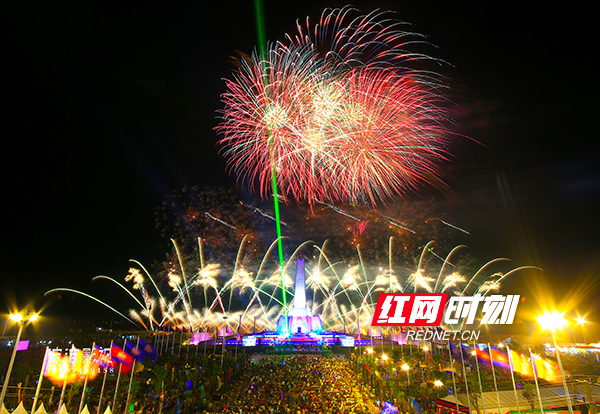 柬埔寨为庆祝内战结束20周年,在双赢广场举办狂欢盛典,浏阳烟花以覆盖1400米的跨度,呈现湄公河上有史以来最壮丽的烟花奇观。