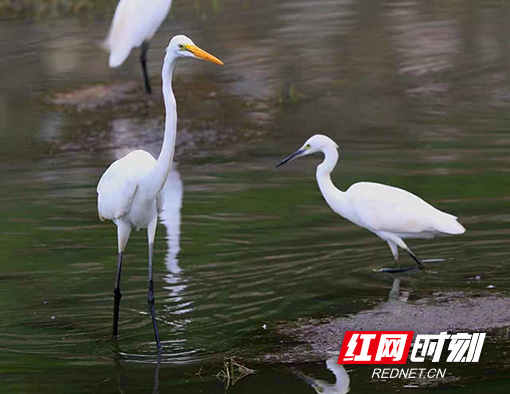 左边黄嘴为中白鹭,右边是小白鹭。(资料图)