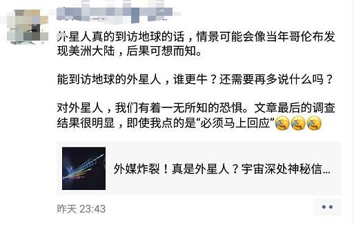 昨天,一则科学家探测到外星神秘重复信号的消息刷屏,到底要不要回应?大家意见分歧很大……