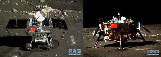 嫦娥四号着陆器与玉兔二号巡视器互拍。(来源:央视)