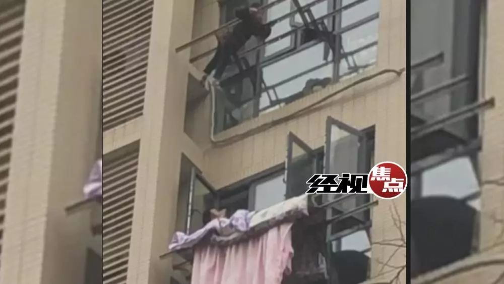 原来,当时8楼的果果家里大人都不在,只是将房门锁住,没想到果果会爬出窗外去找家人。