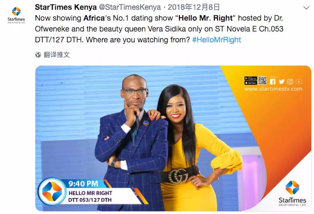 电视荧屏上的这一幕可不是中国相亲节目的非洲专场,而是一档创下收视神话的非洲本土相亲节目“Hello Mr.Right”(你好,我的意中人)。