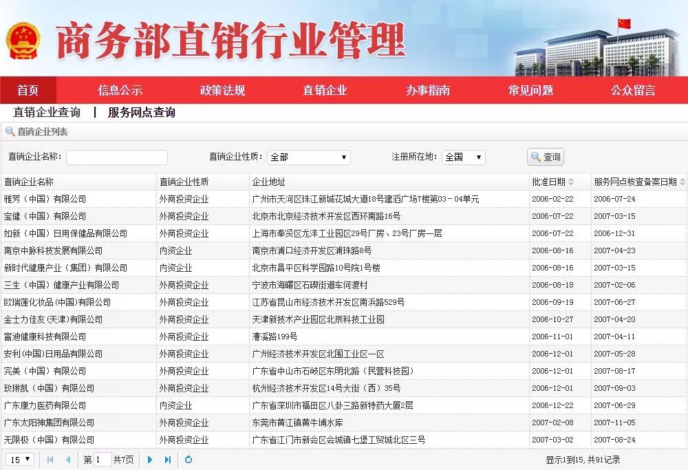 △商务部直销行业管理网站截图