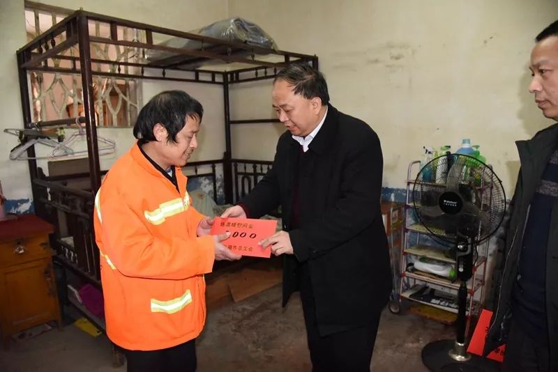 1月21日下午,衡阳市人大副主任、市总工会主席谭敦龙,市总工会党组书记、副主席单绪平带队走访慰问了奋战在一线的环卫工人,为他们送去了党委、政府和工会组织的关怀和节日的问候。