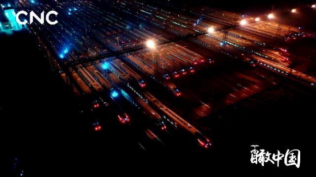 随着2019春运开始,中国铁路沈阳局集团有限公司沈阳动车段沈阳北动车运用所内,20余辆整修完毕的动车组列车整齐列队、整装待发,宛如陆地“航空母舰”一般雄伟壮观,全力满足旅客出行需要。(航拍:姜兆臣)