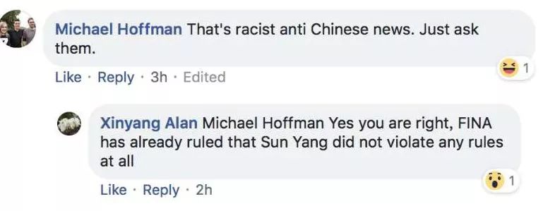 不仅仅是中国的体育迷,在这篇报道的“发源地”,也有很多网友对报道的内容产生怀疑,有的网友甚至认为这是“涉嫌种族歧视的反华新闻”。