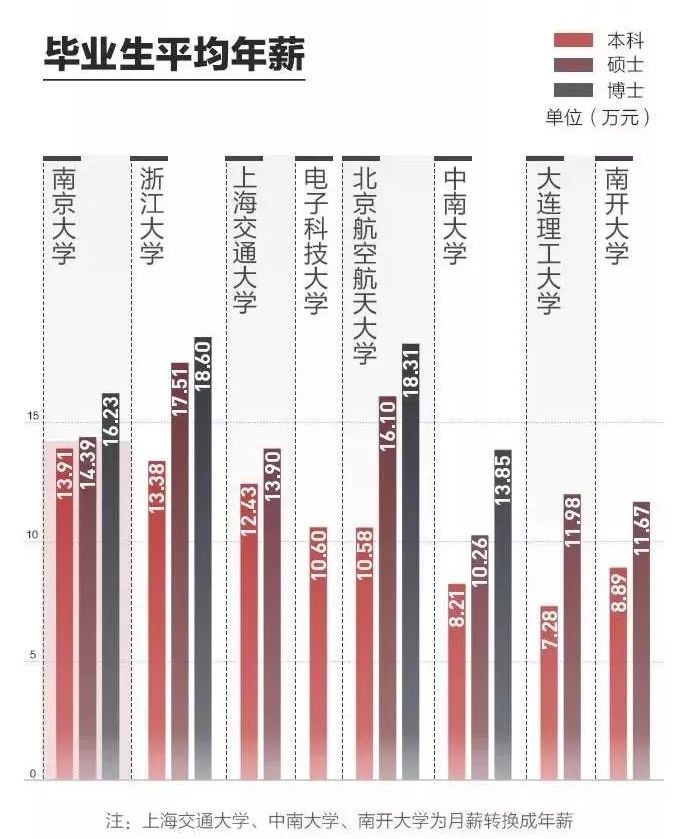 数据显示,这些重点高校毕业生的普遍年薪超过10万元,其中研究生普遍高于本科生。