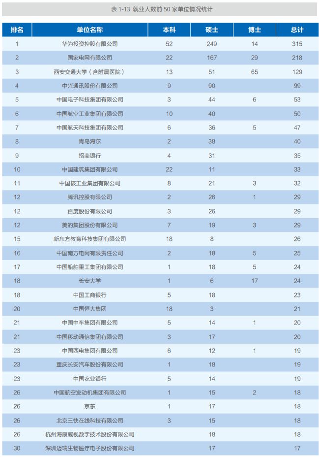 西安交大2018届毕业生签约单位统计