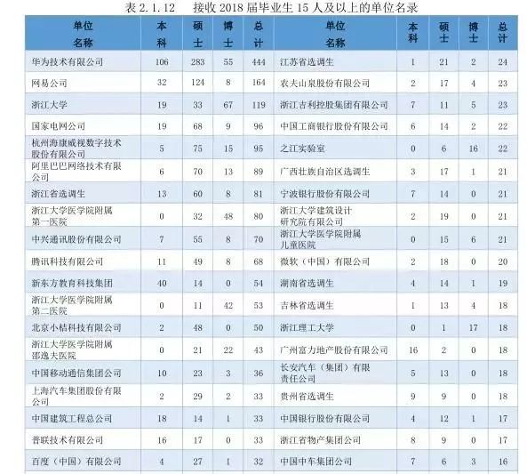 浙江大学2018届毕业生签约单位统计