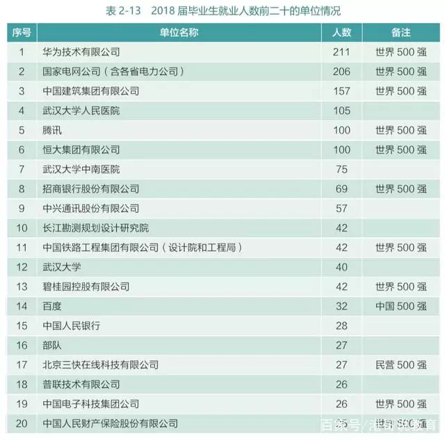 武汉大学2018届毕业生签约单位统计
