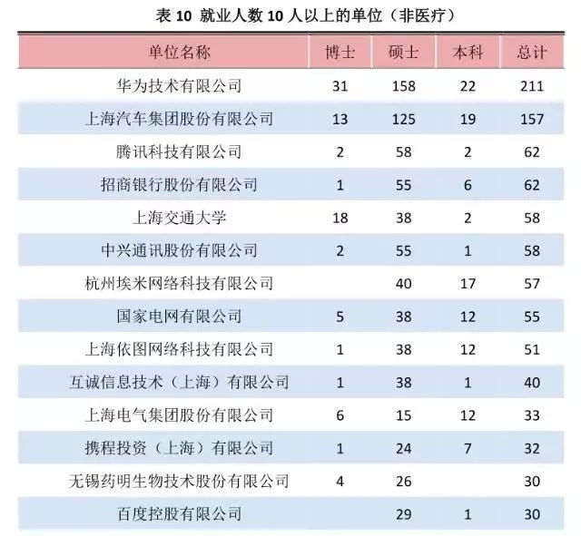 上海交通大学2018届毕业生签约单位统计