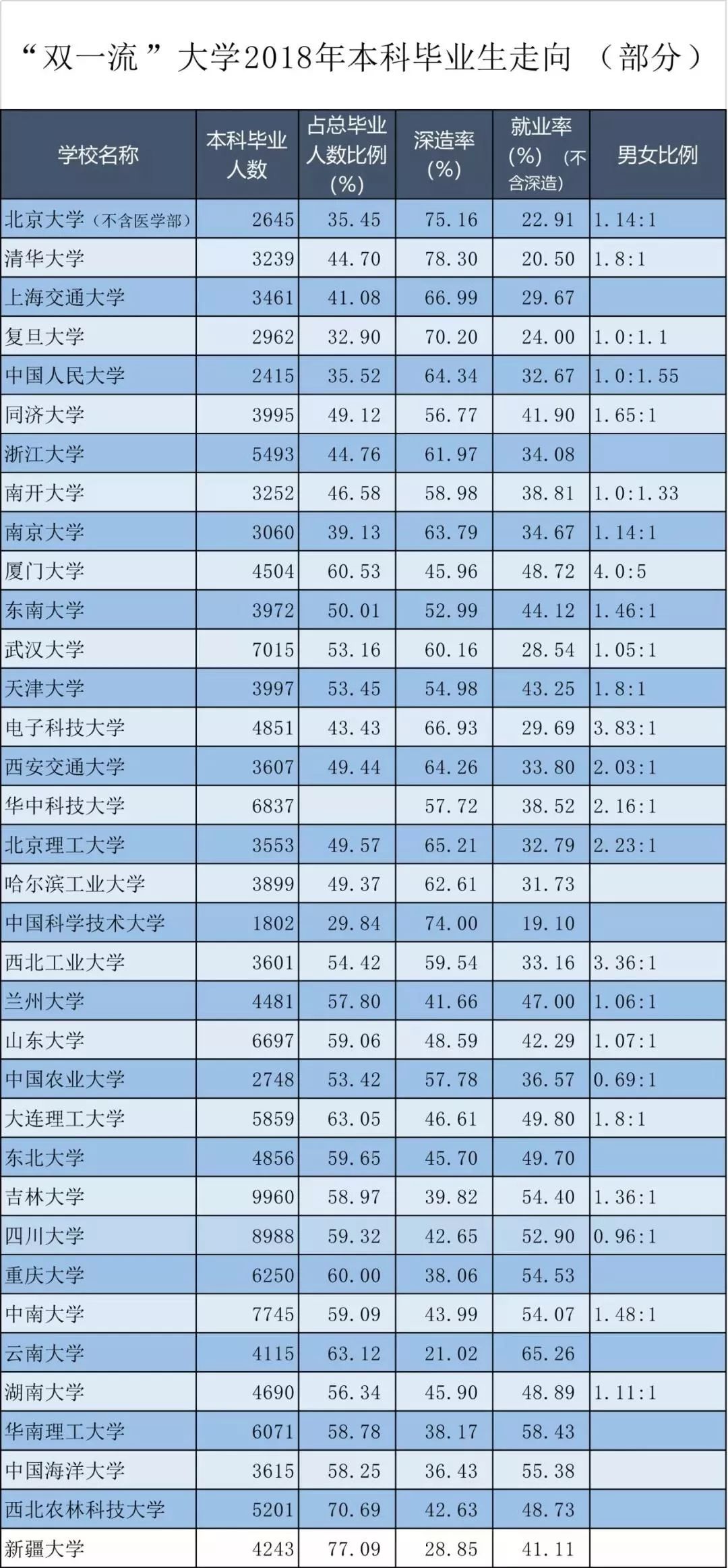 本科毕业生深造率大于就业率