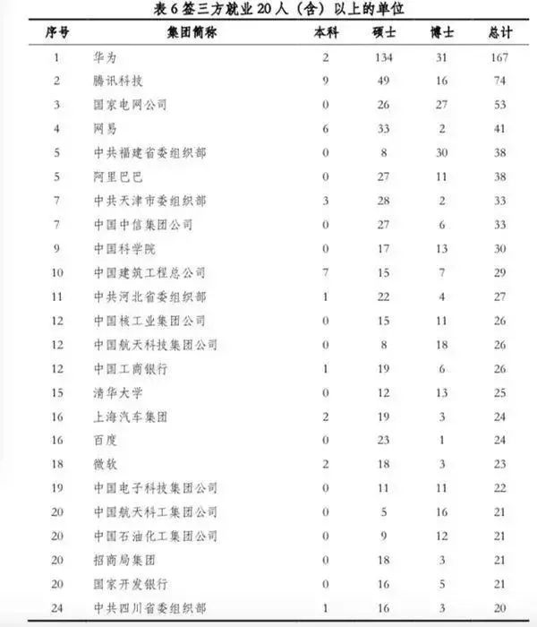 其他知名高校的毕业生也有很大一部分都进了华为。