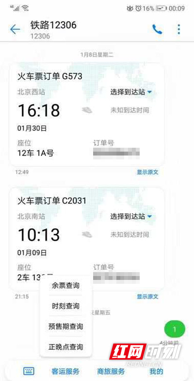 红网时刻1月30日讯(记者 姚冶)红网记者今日获悉,自本月起,铁路12306短信公众号开始上线公测。细心的旅客会发现,此前在12306官网订票成功后收到的行程提醒短信,现在统一优化升级为12306短信公众号的形式向旅客发送,这种更为新颖美观的信息提醒方式,为旅客提供了更为丰富的行程信息。