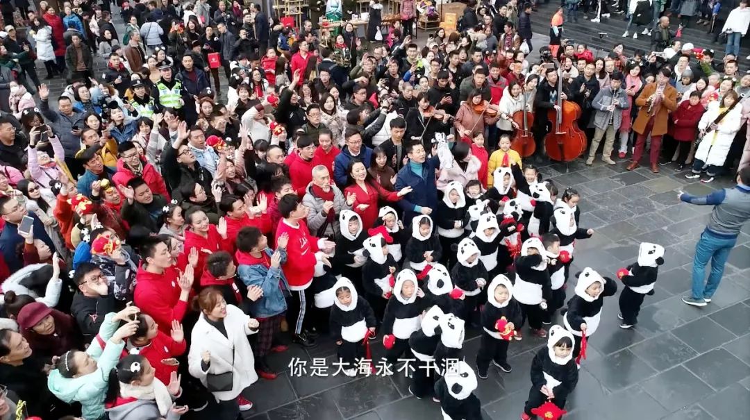 央视记者蒋林带着一群“熊猫宝宝”加入快闪行动,欢乐、青春、激情……各种情绪汇聚,现场成了一片歌声的海洋。