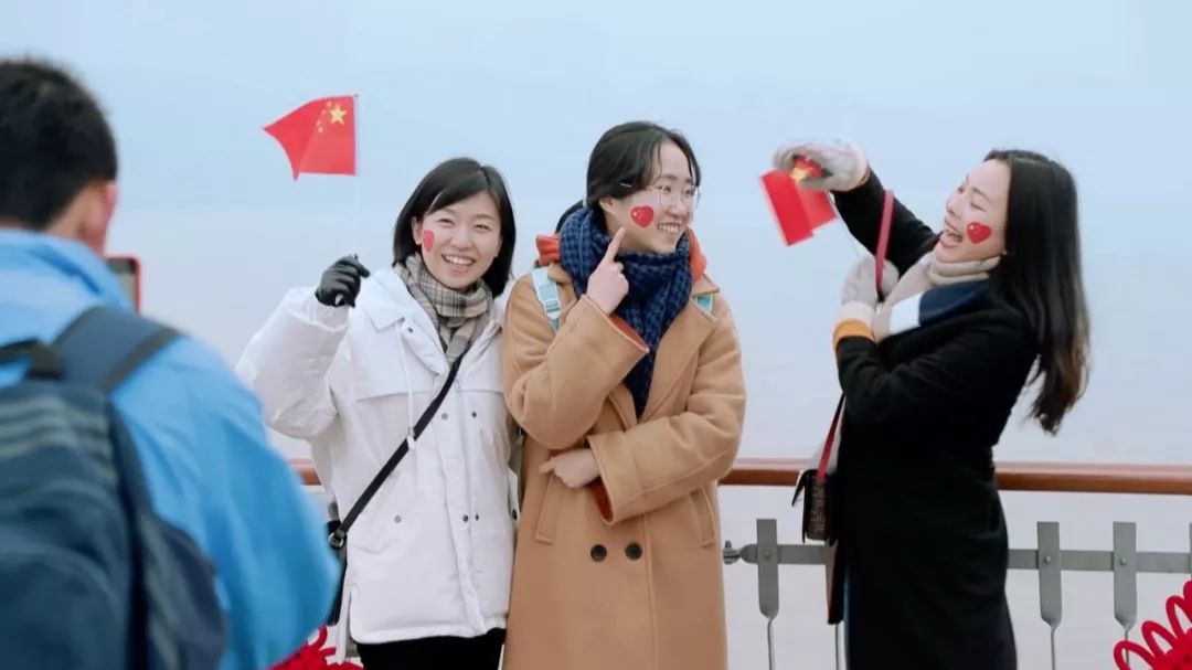大家齐声歌唱,对美好祖国的热爱和祝福似乎都表达在这首歌里了,热烈的氛围一下点燃了市民游客的热情,整座城市都飘荡着“我和我的祖国”的歌声。
