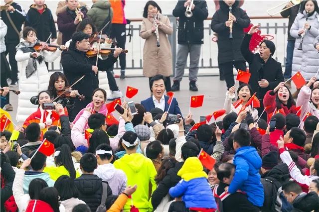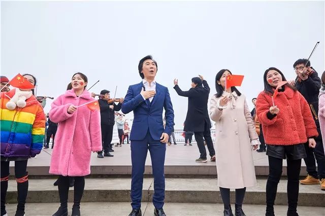 2008年北京奥运会、2016年里约奥运会分别荣获56公斤级男子举重比赛冠军的龙清泉;2012年伦敦奥运会获得羽毛球女双冠军的田卿;2014年,获得国际泳联花样游泳世界杯赛团体冠军的李晓璐,都是“体育湘军”的代表人物。他们三位献唱快闪,给现场群众带来巨大惊喜。新年带领大家演唱《我和我的祖国》,龙清泉说,跟站在冠军领奖台上一样激动。