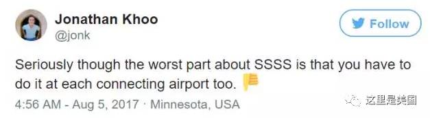 我每次都会被“SSSS”,每次都要接受TSA的特殊检查,进行无比仔细的搜身,还会翻查包里的每一件物品。