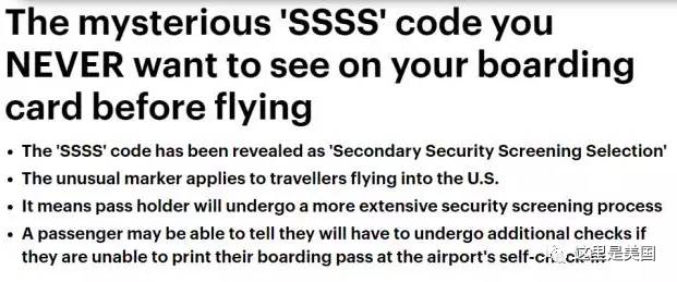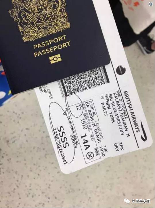 有网友发帖称从北京去美国,在北京首都国际机场办登机手续时,发现自己的登机牌上印了个奇怪的“SSSS”标识。