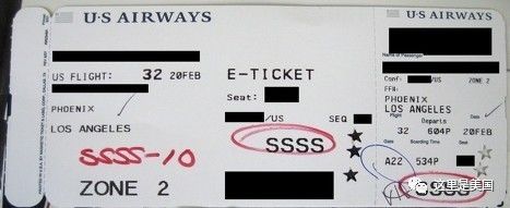 而到了美国入关处,工作人员看到他机票上的这个标志,二话不说就把他带进了一间小黑屋,把他的包翻开,一件一件仔细检查里面的物品,还把他全身搜了个遍。折腾了两个多小时才放行……