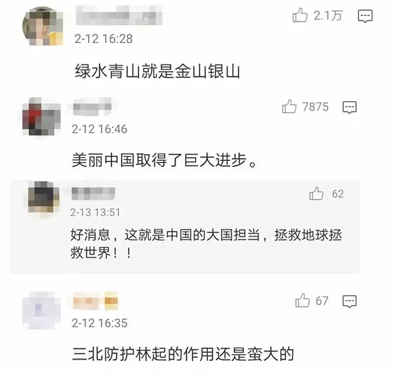 对来自全世界的感谢和鼓励,中国网友们也倍感自豪,不少网友在留言中纷纷“想起”自己为绿化事业出过的一份力: