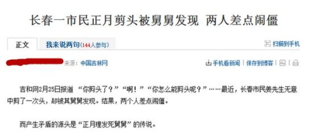 在我国,“正月不能理发”的习俗流传很广。而且在一些省份和地区,很多人从小就听说,正月理发会有非常严重的后果——如果理发,会死舅舅!