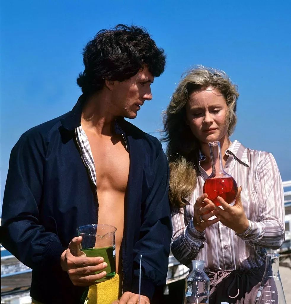 虽然那时候还是黑白荧幕,观众却能从中看出丰富多彩的异国情调。特别是中美建交后的1980 年,一部由中央电视台译制部引进的美国科幻电视连续剧《大西洋底来的人》,男主角麦克风流潇洒,其蛤蟆太阳镜和宽腿牛仔裤,一时成为都市时尚青年追风的必备装束。