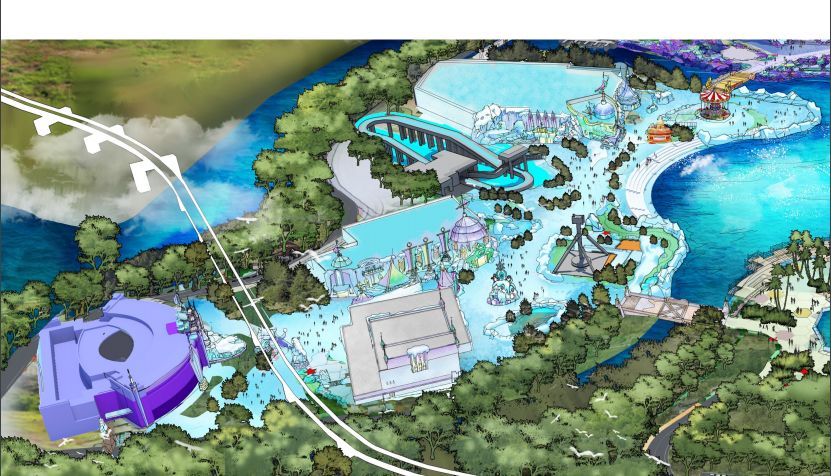 占地7.2万平米游乐区,依托废弃深坑地形,利用冰雪世界顶部、地面、崖壁及深坑底部,打造立体戏水乐园。