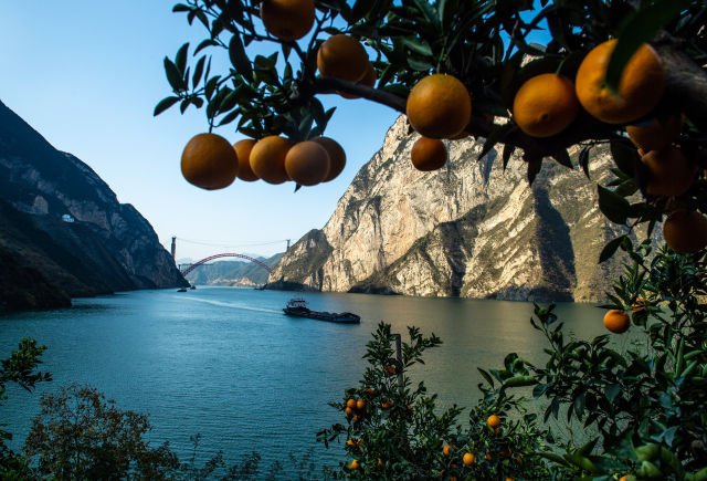 ↑这是“脐橙之乡”湖北省秭归县长江边的脐橙园(2018年11月25日摄)。新华社发(郑家裕 摄)