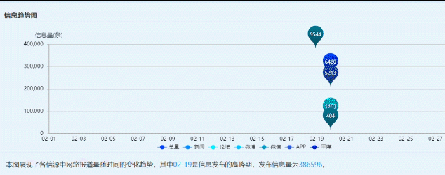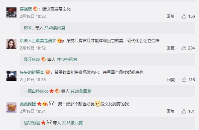 2月19日,也就是故宫夜游开放的第二天,关于故宫的报道量达到386596次,是2月12日-2月28日这段时间之中,报道量最高的一天,也是网友互动最频繁的一天。