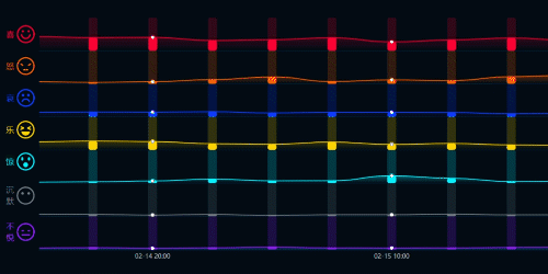 新华睿思大数据也感知到了网民的情绪变化。2月16日上午9-10点,监控图表中喜悦的表情明显下降,沉默和不悦的曲线瞬间飙升,这是网友从抢票“战场”铩羽而归的真实写照。